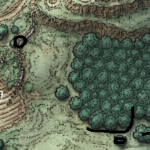 - Excerpt of the Phandalin Map showing a path marked around the southernmost part of the woods to the east of alderleaf farm