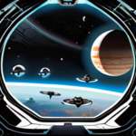 - A view through a viewport of starships forming up to defend Iderati Starport