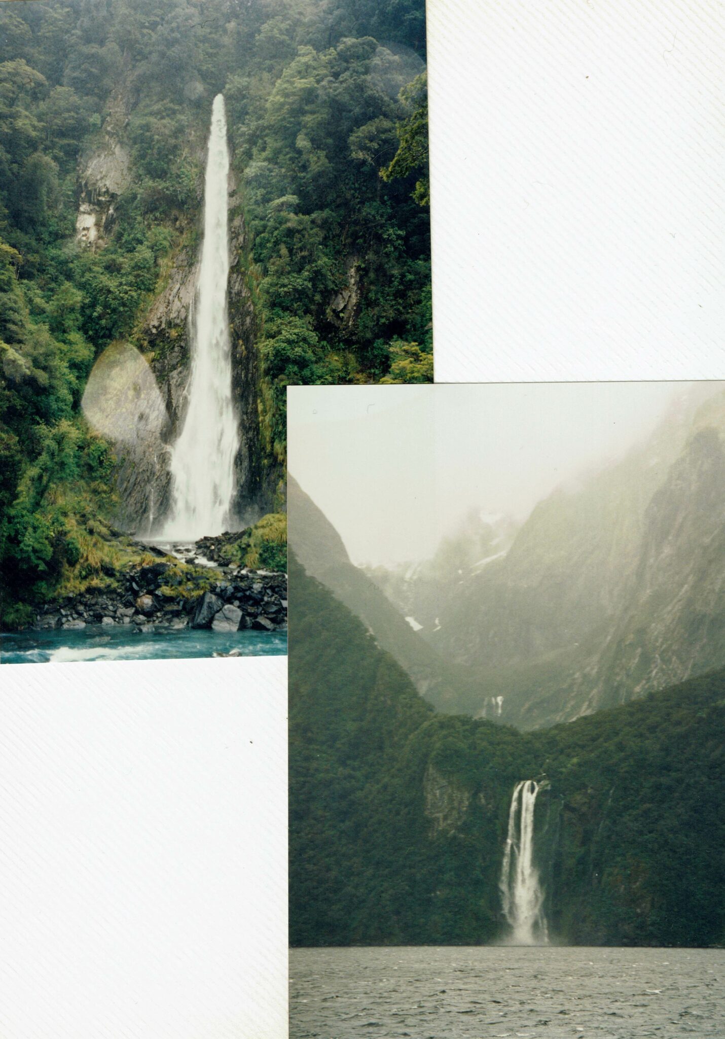 - Two photos of Waterfalls at Milford Sound