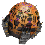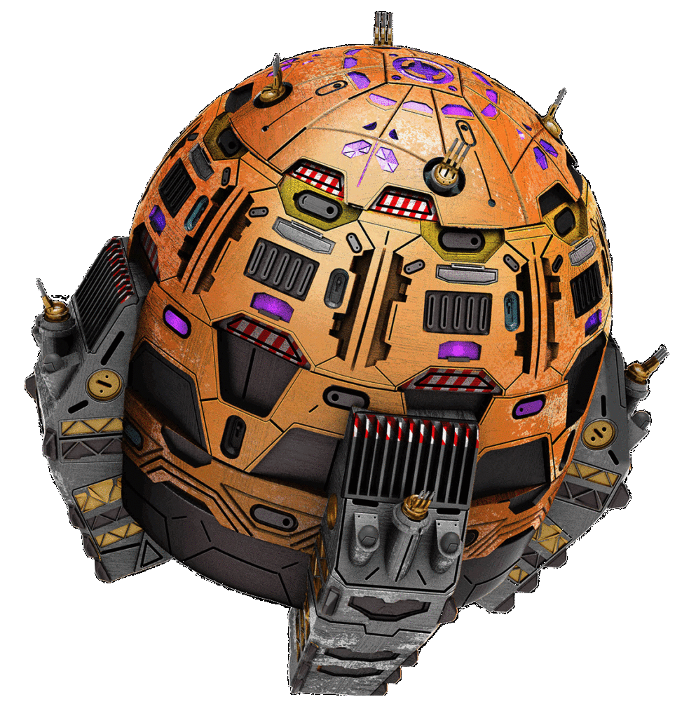 - A spherical starship with four longitudial rectangular sections on the lower half of the vessel